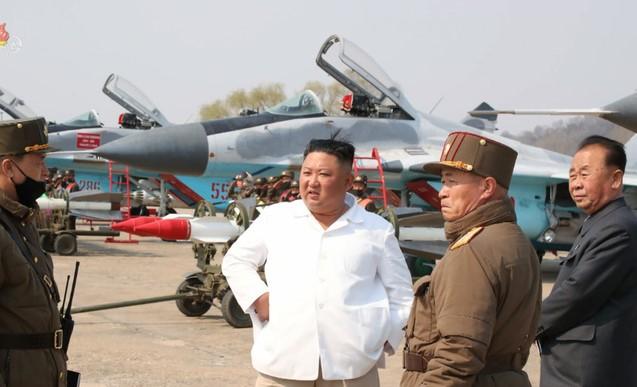 ▲김정은 북한 국무위원장이 서부지구 항공 및 반항공사단 관하 추격습격기연대를 시찰했다고 지난 12일 조선중앙TV가 보도했다. [조선중앙TV 캡처]