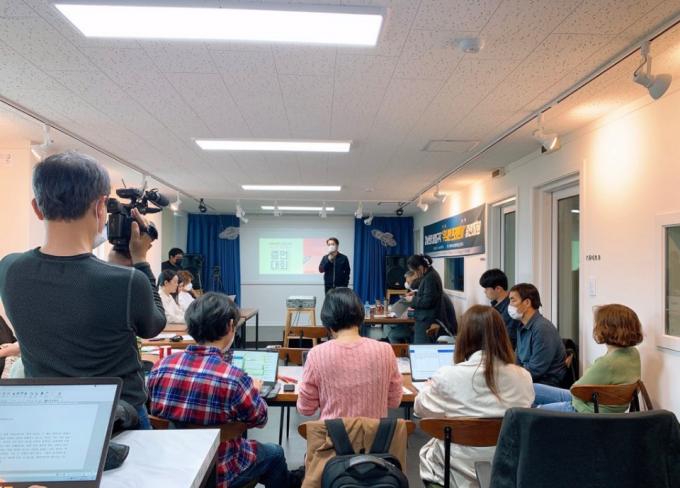 ▲ 29일 수요일 마포FM 문화복합공간 플루토에서 "무늬만 프리랜서"란 제목으로 방송현장 비정규직 증언대회가 열리고 있다. 이날 증언에는 독립피디, 방송작가, 드라마 스태프, 자막 CG등 방송계 다양한 직군이 참여했다. [CJB청주방송 이재학PD사망사건 진상규명·책임자처벌·명예회복·비정규직 문제해결을 위한 대책위원회 제공]
