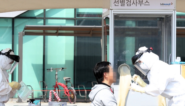 ▲ 황금연휴 첫날인 4월 30일 오전 인천시 연수구 선학경기장 드라이브 스루 선별 진료센터에서 의료진이 코로나19 예방을 위해 인천시 거주 해외입국자를 검사하고 있다. [뉴시스]