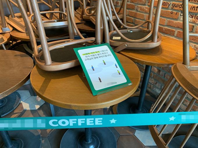 이날 오전 10시께, 서울 마포구의 한 카페는 거리두기를 실천하기 위해 테이블을 대폭 줄인 상태였다. 카페를 찾은 이들은 일상생활을 만끽했다. 한 테이블을 띄워두고 앉거나 한 방향으로 앉기와 같은 지침을 따르는 사람들도 있었다.