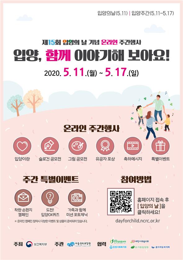 코로나19 사태로 인해 온라인으로 개최되는 행사에서는 슬로건, 그림 공모전 및 유공자 포상 등 다양한 프로그램이 진행된다. 입양의 날 기념 유공 포상자 명단 및 수상소감 등 게재하고, 입양 슬로건 및 우리가족 그림그리기 대회 공모전 수상작 등을 전시한다.