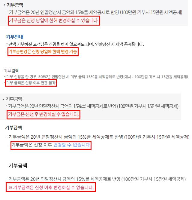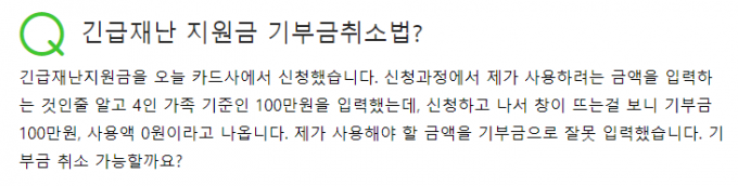 그러나 이는 신청 첫날이라 빚어진 혼선일 가능성도 있다. 실제로 신청 이후 변경할 수 없다고 명시된 한 카드사에 문의해 기부금액을 바꿀 수 있었다는 글이 올라오기도 했다.