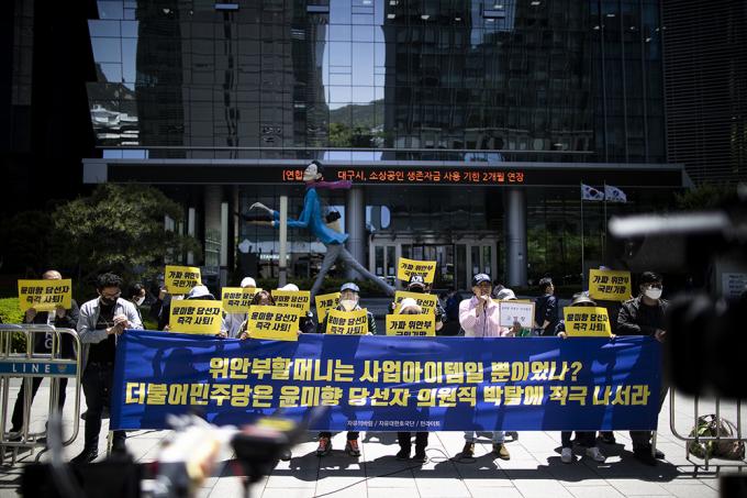 자유의바람, 자유대한호국단, 턴라이트 등은 지난 총선 때 더불어시민당 비례대표로 당선된 윤 전 이사장의 사퇴와 정의연 해산을 주장했다.