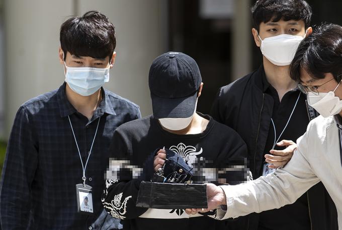 이날 오전 10시 53분께 법원청사 밖을 나선 송 씨는 마스크와 모자로 얼굴을 전부 가린 채 포승줄에 묶여 등장했다.