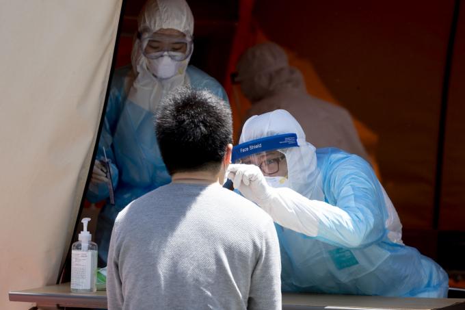 ▲ 서울 성동구보건소 내 선별진료소에서 의료진이 13일 오전 코로나19 검사를 위해 검체 채취를 하고 있다.[문재원 기자]