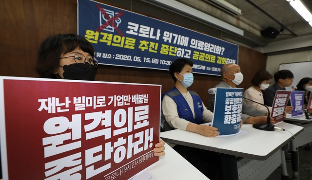 코로나19 사회경제위기 대응 시민사회대책위(이하 시민대책위)는 15일 오전 참여연대 아름드리홀에서 기자회견을 열고 "원격의료는 안정성이 입증되지 않아 오진의 가능성이 크다"며 반대 입장을 냈다.