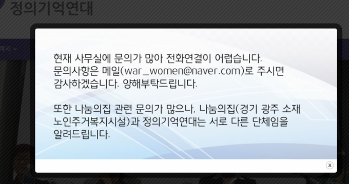 이에 정의연은 공지사항을 통해 위안부 피해자 지원 단체 중 하나인 '나눔의 집' 과 다른 단체임을 강조하며, 나눔의 집 사안과는 관련이 없음을 밝혔다.