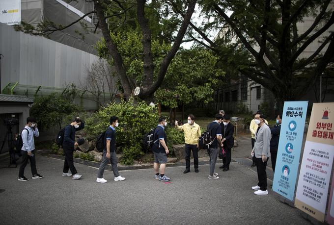 위기 땐 수능 연기·9월 학기제 가능성도 코로나19 확산으로 굳게 닫혔던 학교 문이 80일 만에 열렸다. 고등학교 3학년이 20일부터 등교수업을 시작했다.