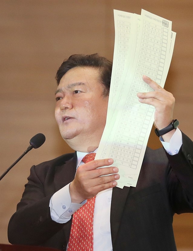 민 의원은 "QR코드를 사용한 불법선거였다"며 "(QR코드에 담긴) 500만 명의 성명, 주민번호, 주소, 전화번호, 이메일, 등록기준지, 전과, 병역, 학력, 납세, 교육경력, 재산 등을 사용한 의혹도 있다"고도 말했다.