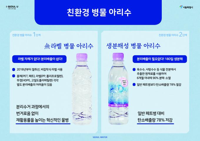 2001년 병물 아리수가 처음 출시된 이후 크게 3번에 걸쳐 페트병과 라벨 디자인이 변경된 적은 있지만, 비닐라벨을 완전히 없애고 페트병 소재를 획기적으로 바꾸는 친환경 혁신은 19년 만에 처음이다.