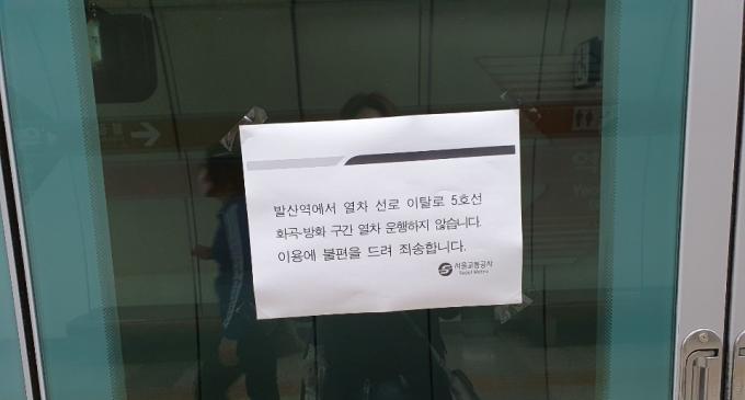 지하철 5호선 발산역서 열차 탈선…방화~화곡 운행 중단