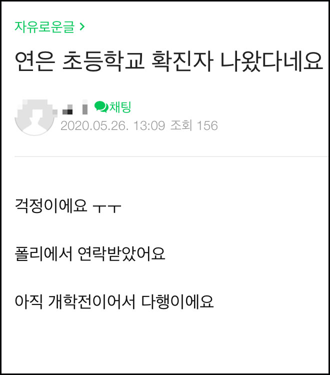 연은초 관계자는 "오후 1시 30분 경 현재 보건당국에서 유선으로 지휘가 이뤄졌다"며 "돌봄교실에 와있던 아이들 부모님께 연락해 귀가조치 시키거나 선별진료소에 보내는 등의 조치를 취했다"고 설명했다.