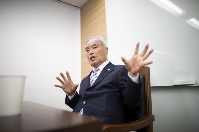 ▲ 28일 오후 서울 광화문 ⟨UPI뉴스⟩에서 인터뷰하는 강신옥 전 의원. [정병혁 기자]