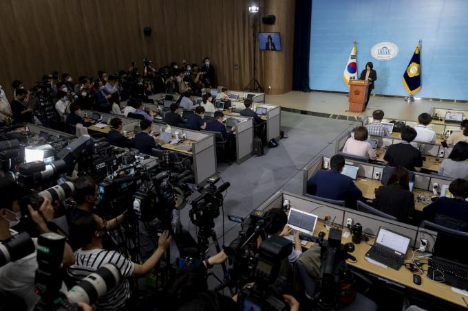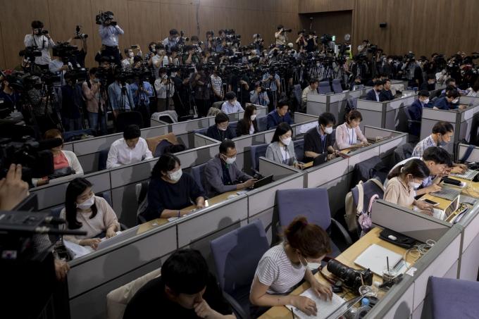 윤미향 당선인 기자회견에 모인 내·외신