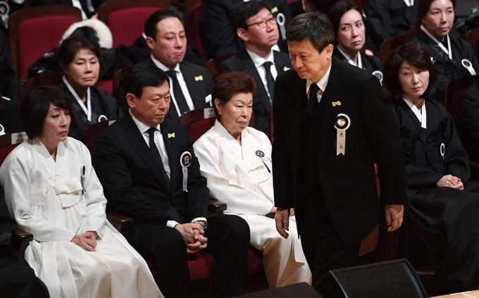 ▲ 신동주 SDJ코퍼레이션 회장이 지난1월 22일 서울 송파구 롯데월드몰 콘서트홀에서 엄수된 고 신격호 롯데그룹 명예회장의 영결식에서 유족 인사를 위해 제단으로 향하고 있다. [정병혁 기자]