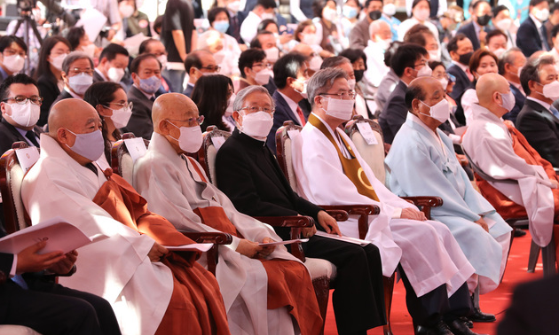 조계종 종정 진제스님과 총무원장 원행스님을 비롯해 한국천주교주교회의 의장 김희중 대주교, 한국기독교교회협의회 이홍정 총무 등 이웃 종교 지도자들이 자리를 함께했다.