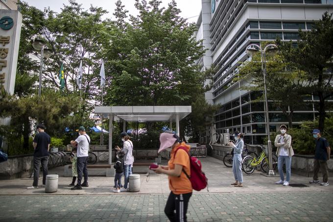 ▲ 지난 3일 오전 인천 부평구보건소에 마련된 선별진료소를 찾은 시민들이 검사를 받기 위해 줄 서고 있다. [정병혁 기자]