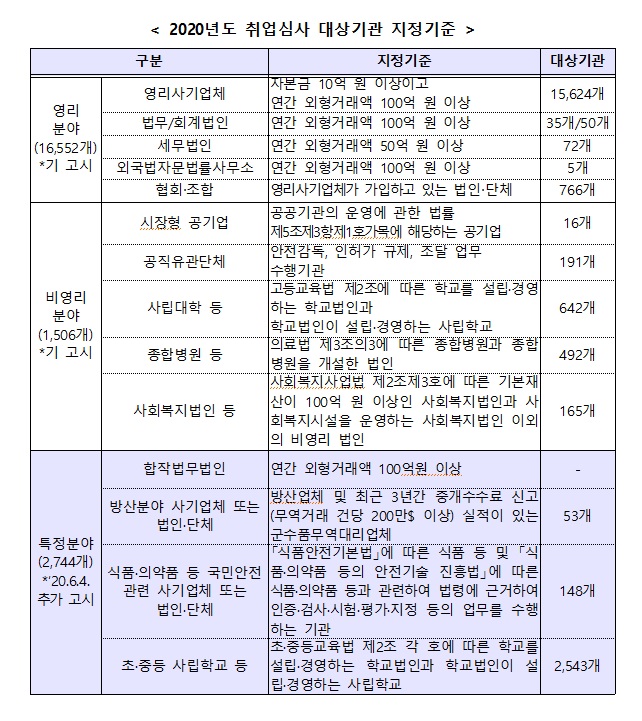 이번에 추가된 취업심사 대상 기관은 식품·의약품 등 국민안전 관련 148개, 방산 관련 53개, 초·중등 사립학교·학교법인 2543개다.