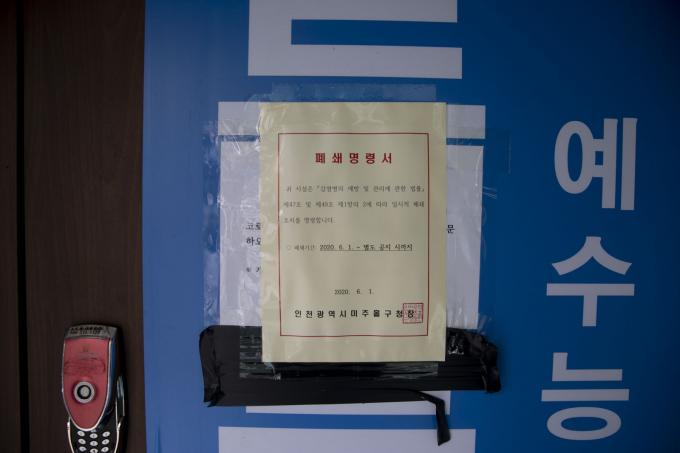 ▲ 수도권 개척교회 관련 코로나19 누적 확진자가 66명으로 집계된 4일 오후 인천 미추홀구에 위치한 해당 교회에 폐쇄 명령서가 붙어 있다. [문재원 기자]