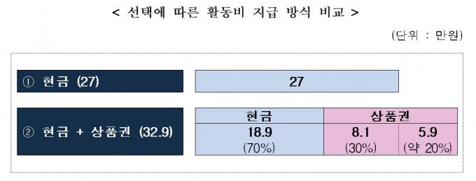 기존 보수 27만 원 중 일부(8만 1000원, 30%)를 상품권으로 수령 할 경우, 추가 보수(5만 9000원, 약 20%)를 상품권으로 받게 된다.