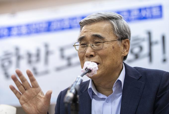 ▲ 이종석 전 통일부 장관이 9일 오전 서울 종로구 한국기독교회관 조에홀에서 열린 '6.15공동선언 20주년 토크콘서트-한반도 평화! 해법은 있는가'에서 초청강연을 하고 있다. [정병혁 기자]