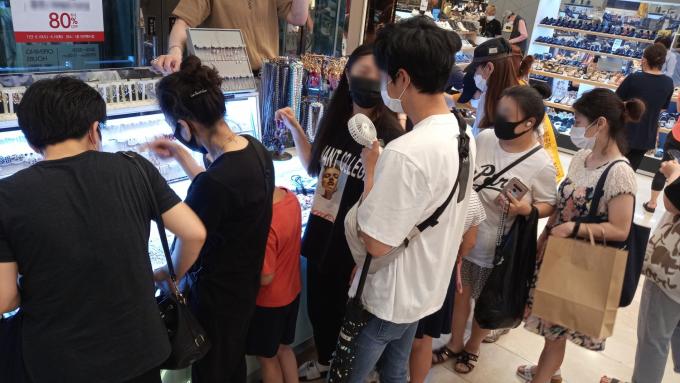 쇼핑객들은 물론이고 매장 직원들의 표정도 한층 밝다. 재난지원금 효과가 분명해 보인다. 액세서리 매장에 근무하는 A 씨는 "손님들이 확실히 많아졌다. 살까말까 망설이기보다는 사고 싶은 것을 선뜻 집어드는 분들이 많아졌다. 공돈이 생긴 효과를 실감한다"고 말했다.