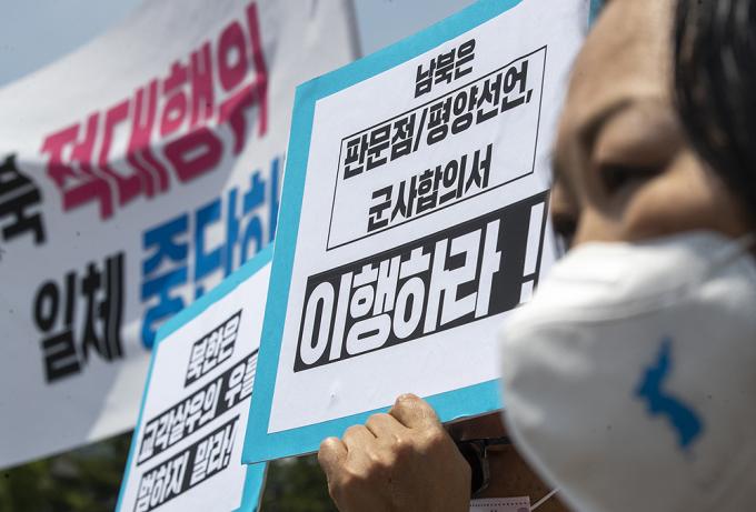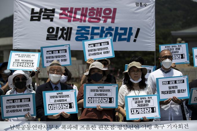 한국진보연대도 이날 성명을 통해 "파국을 막는 길은 '민족자주의 원칙으로 모든 합의들을 철저히 이행한다'는 판문점선언 정신을 실천하는 것"이라며 "현 상황을 관리해보려는 얕은 수로는 파국을 막을 수 없다"고 주장했다.