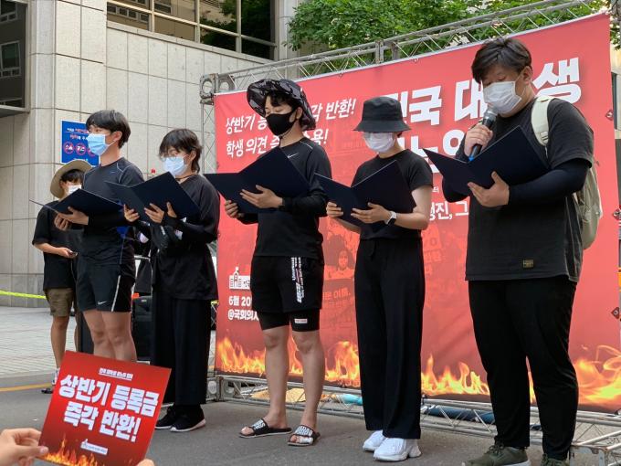 아울러 "지난 2월, 추운 겨울부터 코로나19 대학가 문제 해결에 목소리를 내기 시작했는데 벌써 이렇게 더운 여름이 됐다"면서 "계절이 두 번이나 바뀌는 동안 대학생들의 현실은 변한 것이 없다는 사실이 너무나도 착잡하다"고 말했다.