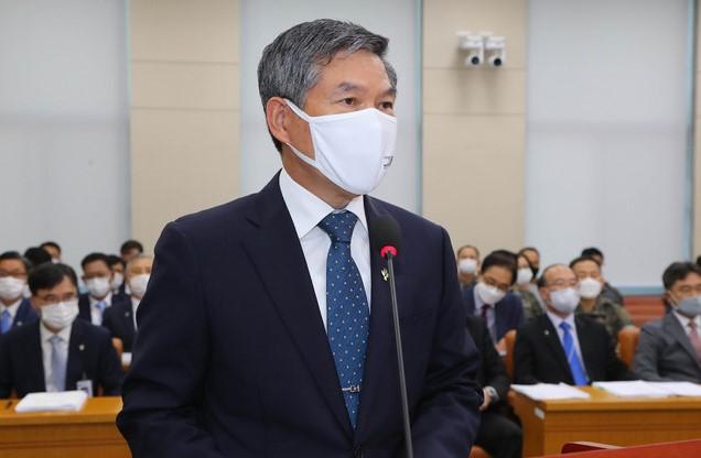 ▲정경두 국방부 장관이 22일 서울 여의도 국회에서 열린 국방위원회 전체회의에 참석해 업무보고를 하고 있다. [뉴시스]
