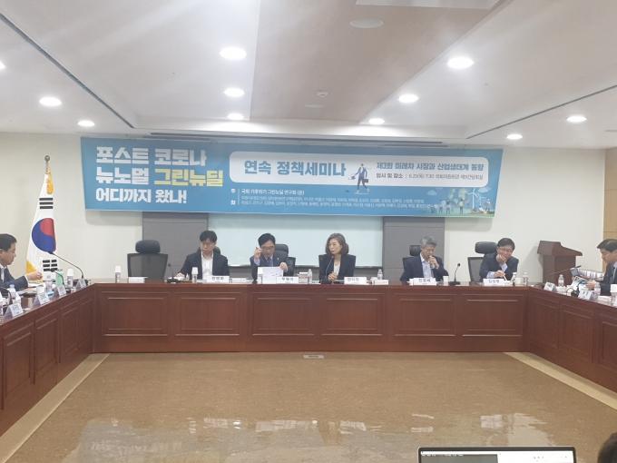 연구책임의원인 민주당 양이원영 의원은 "그린뉴딜은 기후위기 극복 방안일 뿐 아니라 경제정책"이라며 "미래차는 국내 신산업 생태계 조성과 일자리 창출의 핵심이 될 수 있다"고 말했다.