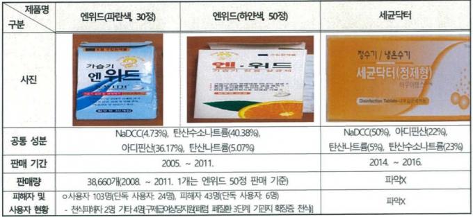 엔위드와 함께 다른 가습기살균제 제품을 함께 사용한 5명은 폐질환을 인정받기도 했다. 이번 사참위 조사로 NaDCC를 사용한 제품이 추가로 한 개 더 확인됐다.