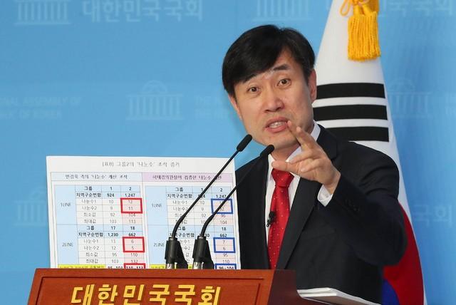 ▲ 미래통합당 하태경 의원이 6월 11일 국회 소통관에서 기자회견을 열고 "민경욱 전 의원 측이 선거부정의 증거라고 밝힌 '팔로우 더 파티'(Follow the Party)는 고의적으로 조작한 결과"라고 주장하고 있다. [뉴시스]