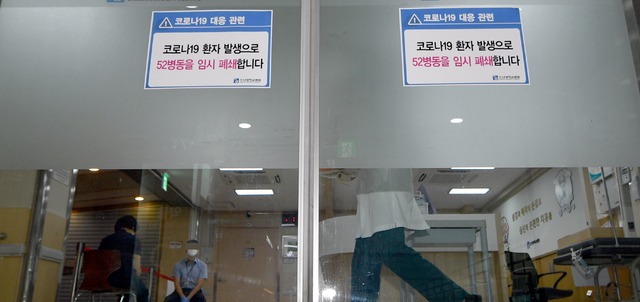 ▲ 광주 동구 조선대학교병원 입원 환자 1명이 코로나19 확진 판정을 받아 해당 병동 전체가 임시 폐쇄된 가운데 2일 조선대병원 의료진들이 분주하게 움직이고 있다. [뉴시스]