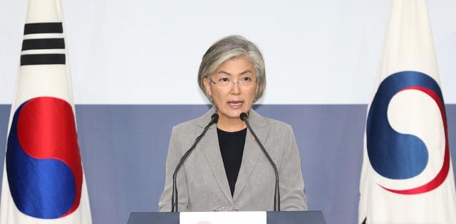 ▲강경화 외교부 장관이 2일 서울 종로구 외교부 청사에서 열린 내신기자회견에서 발언하고 있다. [뉴시스]