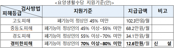 ▲ 요양생활수당 지원기준. [환경부 제공]