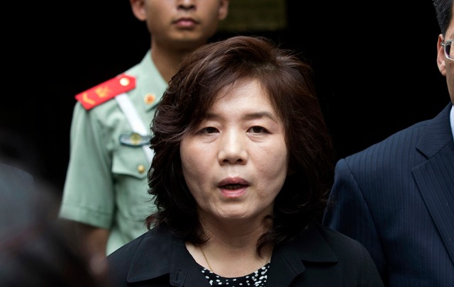 ▲ 2016년 6월 23일 중국 베이징 주재 북한대사관 밖에서 기자들에게 브리핑하는 최선희 부상 [AP 뉴시스]
