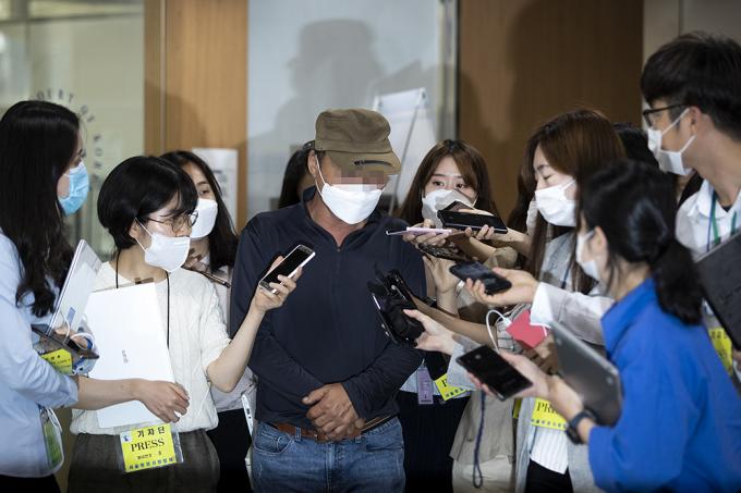▲ 지난달 16일 서울 서초구 서울고등법원에서 열린 세계 최대 아동 성 착취물 사이트 '웰컴 투 비디오' 운영자 손정우 씨의 미국 송환 여부를 결정하는 범죄인 인도심사 두번째 심문 재판이 마친 뒤 손 씨의 아버지가 법정을 나오며 취재진의 질문에 답하고 있다.[정병혁 기자]