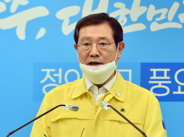 ▲ 이용섭 광주시장이 지난 5일 광주 서구 광주시청 브리핑룸에서 코로나19 확진자 현황과 관리방안을 발표하고 있다. [뉴시스]