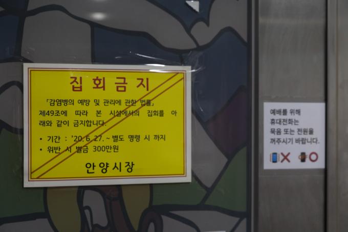 ▲ 코로나19 확진자가 발생한 경기 안양 만안구 주영광교회에 지난달 29일 '집회금지 행정처분서'가 붙어 있다. [문재원 기자]