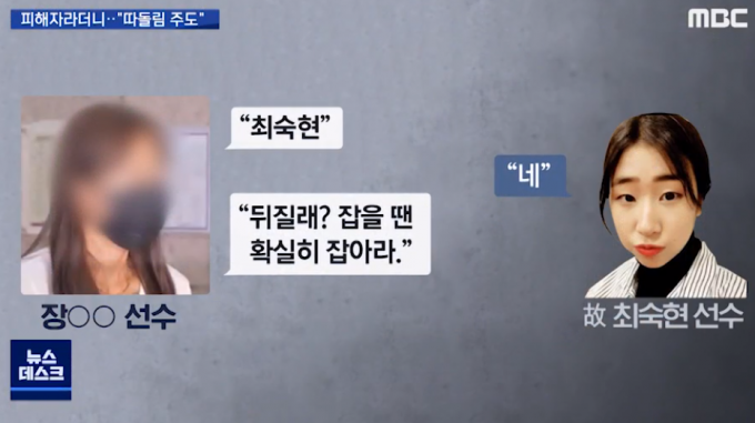 8일 MBC '뉴스데스크'는 장 선수가 후배 선수들의 사이를 갈라놓고 따돌리는 내용이 담긴 음성파일을 입수해 보도했다.