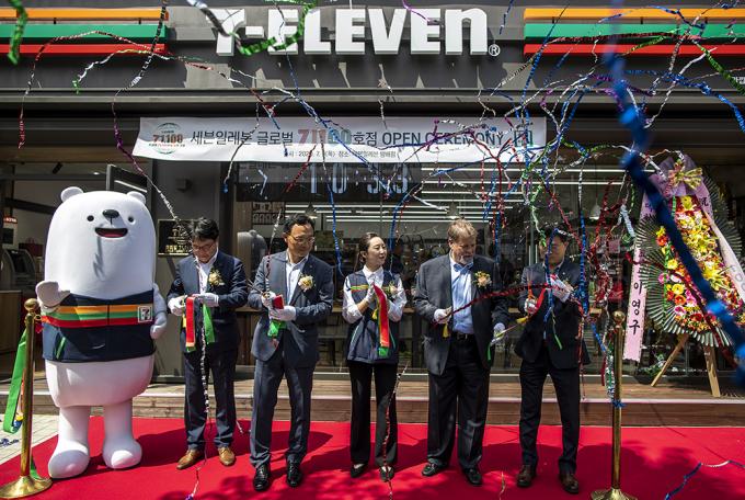 세계 최대 규모의 편의점 브랜드 세븐일레븐이 글로벌 프랜차이즈 역사상 전례없는 7만1100호점을 열었다. 7만1100호점은 서울 서초구의 세븐일레븐 '푸드드림 방배점'이다. 1927년 미국 댈러스 1호점을 시작으로 오랜 전통을 이어오고 있는 세븐일레븐은 1989년 5월 국내 1호점인 '세븐일레븐 올림픽점'을 오픈하며 편의점 시대를 열었다. 9일 열린 오픈 기념식은 그레고리 브리스코 주한미국대사관 상무공사와 최경호 세븐일레븐 대표이사를 비롯한 임직원이 참석한 가운데 진행됐다.