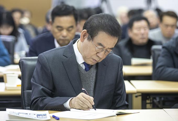 ▲ 지난해 11월 27일 서울 종로구 국립고궁박물관에서 열린 '광장 민주주의와 성숙한 집회시위 문화라는 주제로 열린 새로운 광화문광장 조성 3차 토론회'에 참석한 박원순 서울시장. [정병혁 기자]