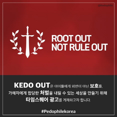 'K-PedOPhile'(소아성애자)이라는 단체는 "(15일부터) 대한민국 아동 성 착취물 유포자 처벌 실태를 외신에 공론화하기 위한 타임스 스퀘어 광고 모금을 진행할 예정"이라는 내용의 글을 지난 13일 올렸다.