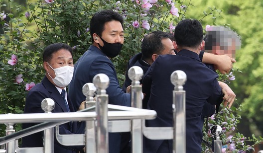 당시 정 씨는 경호원들이 제압하려하자 "가짜평화 위선자 문재인은 당장 자유대한민국을 떠나라"고 소리쳤다.