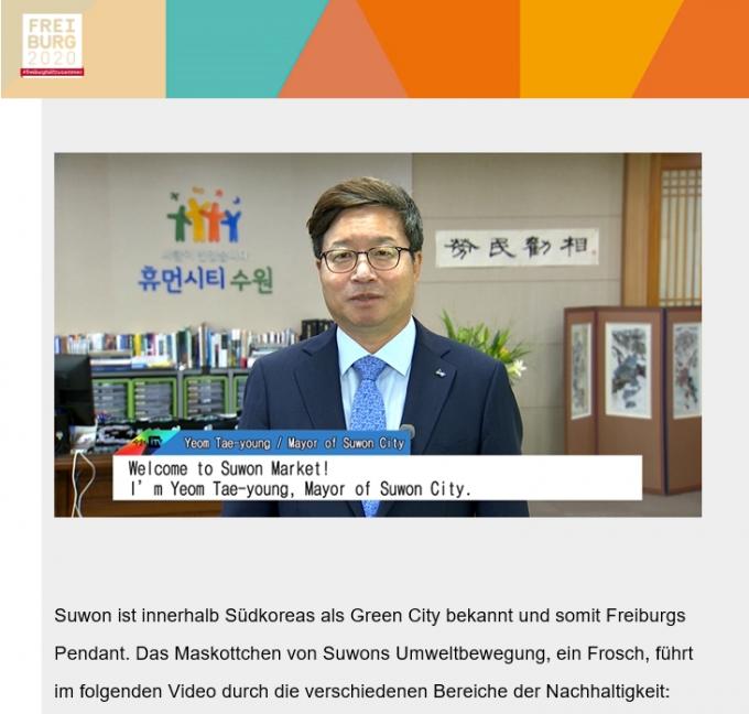 20일 수원시에 따르면 지난 10일 독일 프라이부르크 시 홈페이지 내 '가상 자매도시 마켓' 창에 프라이부르크 시 설립 900주년을 축하하고 수원시를 소개하는 각종 영상물을 올렸다.