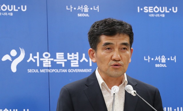 ▲ 황인식 서울시 대변인이 22일 오후 서울시청 브리핑실에서 박원순 전 서울시장의 성추행 의혹 피해자 지원 단체 2차 기자회견에 대한 서울시 입장을 발표하고 있다. [뉴시스]