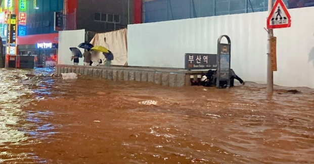 기상청에 따르면 부산에는 시간당 81.6㎜의 집중호우가 쏟아졌다. 이는 1920년대 이래 10번째로 많은 강수량이다.