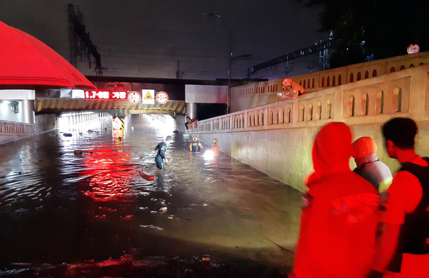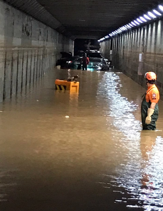 ▲ 부산 동구 초량동 부산역 제1지하차도에 물이 차면서 차량 6대가 침수, 시민 3명이 숨진 채 발견됐다. [부산소방재난본부 제공]