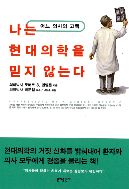 '대중의 의사(The People's Doctor)'란 칼럼을 통해 미국인들의 존경을 받은 소아과 의사 출신 로버트 멘델존 박사가 기념비적인 저서 '나는 현대의학을 믿지 않는다'에서 한 말이다. 원제 '어느 의료 이단아의 고백(Confessions of a Medical Heretic)에서 알 수 있듯 이 책은 평생 의사와 대학교수로 살아온 그가 현대의학이라는 가면을 벗겨내는 양심고백이라 할 수 있다.