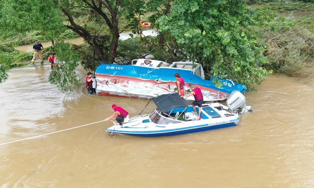 실종자 5명에 대한 수색은 같은 날 오후 6시 30분께 일몰로 종료됐다가 이날 오전 6시께 재개했다. 당국은 헬기 10대와 드론 12대, 보트 27대, 소방·경찰·장병·공무원 등 인력 1386명을 동원해 수색하고 있다.